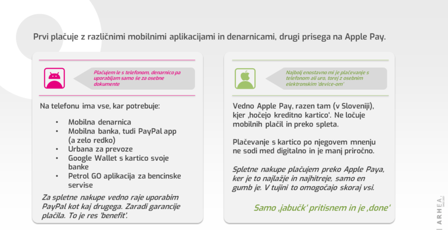 Flik, PayPal, Revolut … ko govorimo o digitalnih uporabnikih, je vsaj ena od teh v njihovi izbiri in redni uporabi. Zanimivo pa je, da se odnos do teh načinov zelo razlikuje, razlikujejo pa se tudi segmenti digitalnih uporabnikov, ki nikakor niso več enotni – digitalni uporabniki so postali ‘mainstream’ in predstavljajo tako velik del populacije, da jih je potrebno segmentirati, če jih želimo razumeti. Mi smo za namen predstavitve teh rezultatov in predstavljanja širšega konteksta le-teh naredili vpogled v dva predstavnika naprednih – digitalnih uporabnikov.